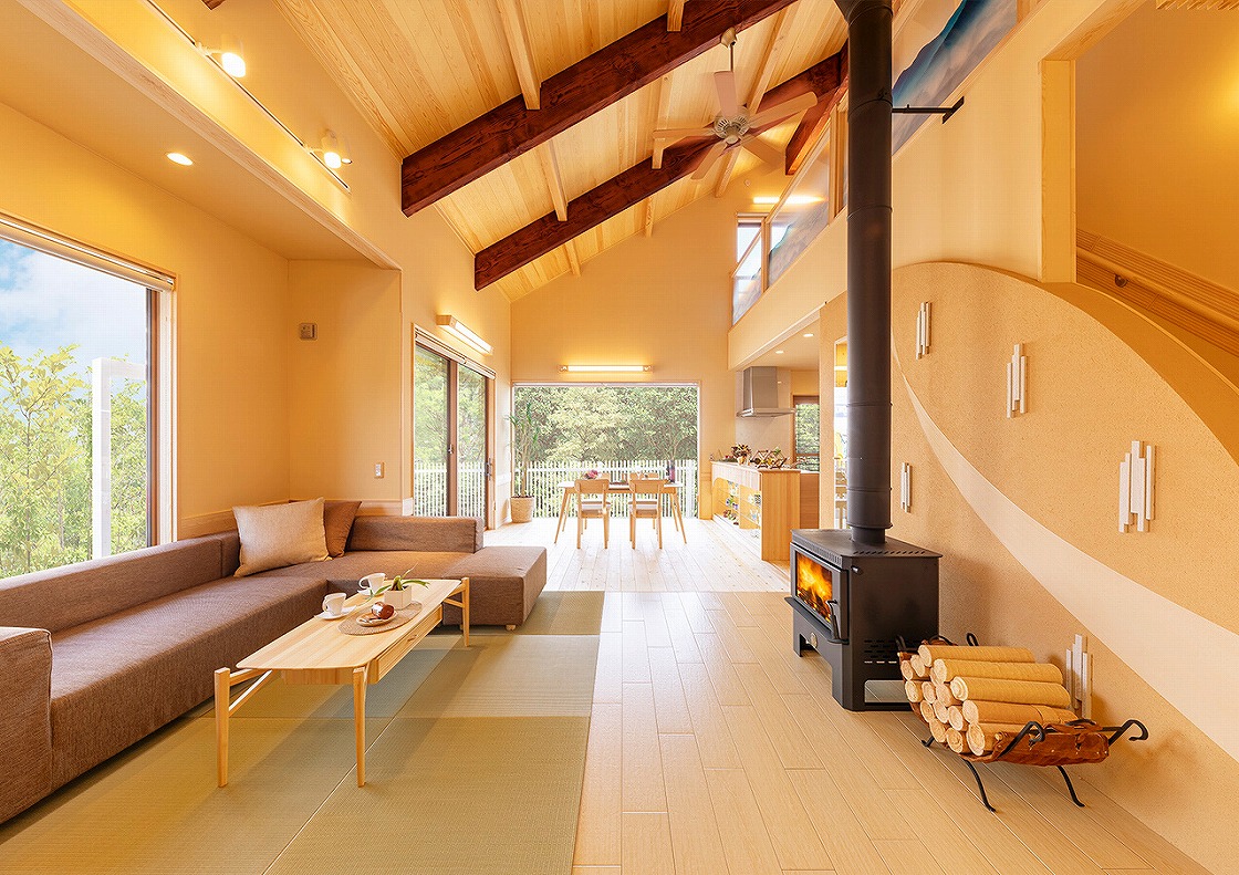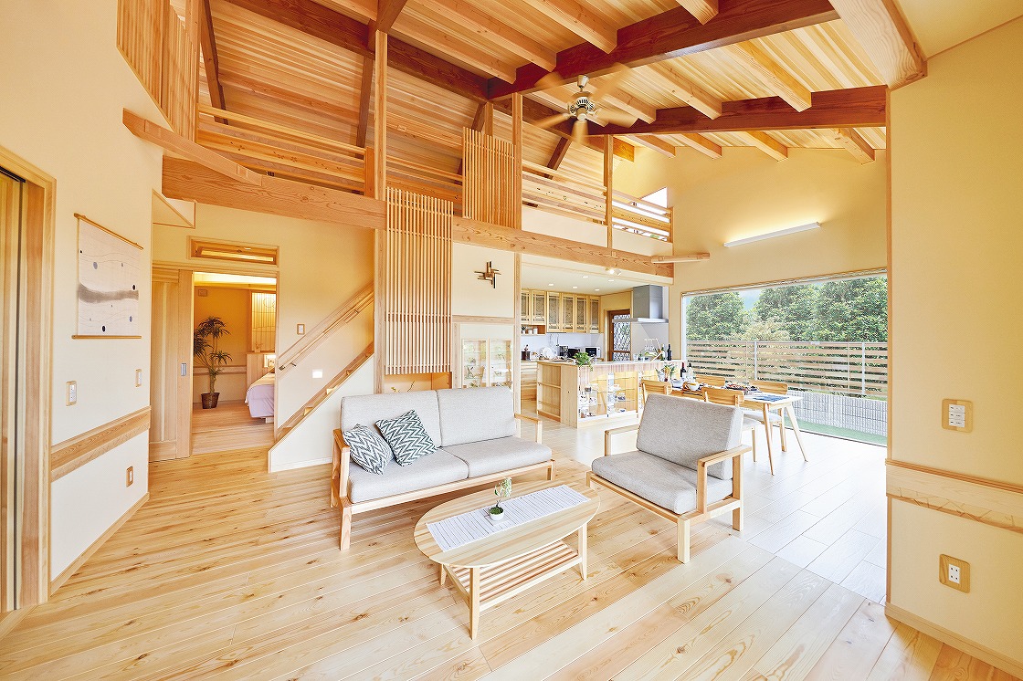 強度の高い天然無垢材や工法により、木組みの大空間を実現することが可能です。