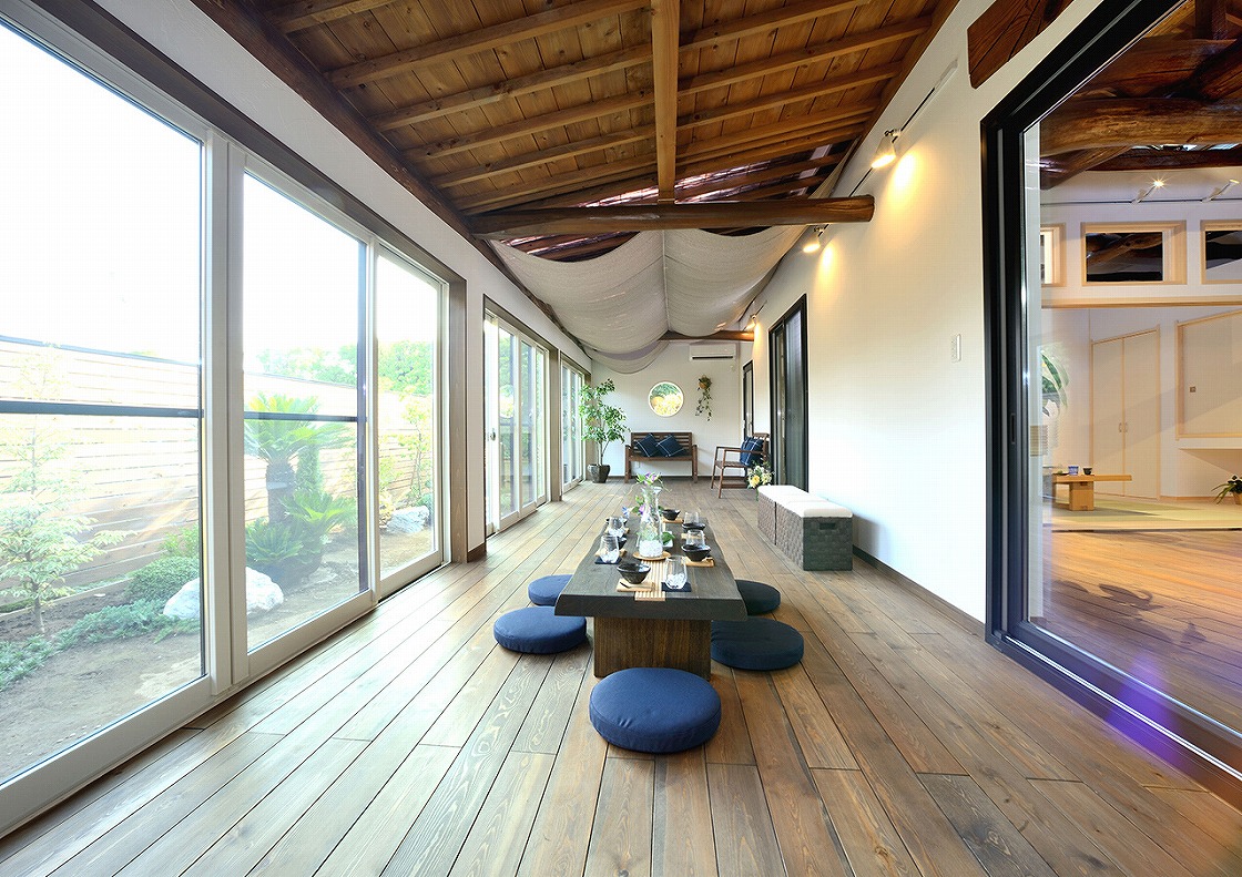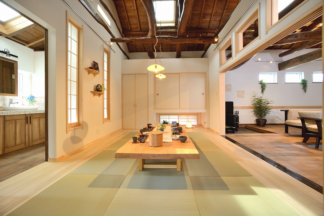 凛とした風格の中に漂う懐かしさ、心の原風景とも言える住まい。日本の伝統的な木造建築を継承し、くらら工房の最先端の建築技術と融合した古民家調の空間は、住む人の心の奥底に眠る郷愁を呼び覚まします。