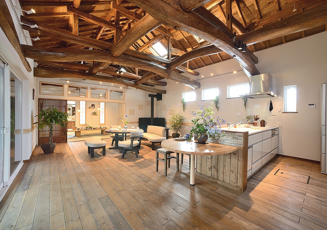 新しい家では味わえない重厚感を感じられるのも古民家の良さ。使用されている、木の形を活かしたままの立派な柱や梁は、今ではもう望めないかもしれません。古民家の良さを受け継ぎつつ、今の生活スタイルに合うように手を加える。古民家リフォームは『住み継ぐ家』と言えます。